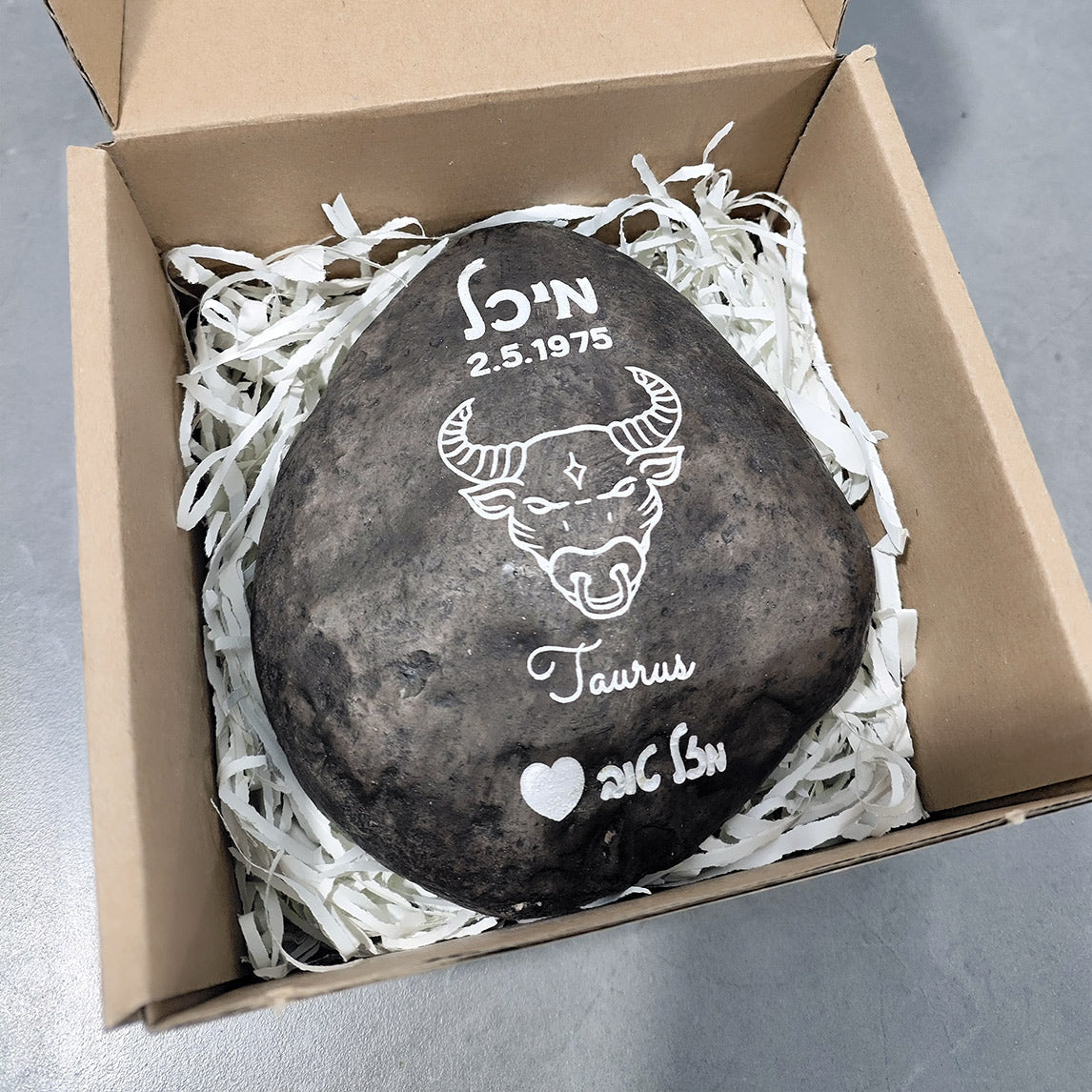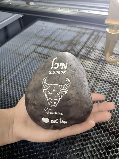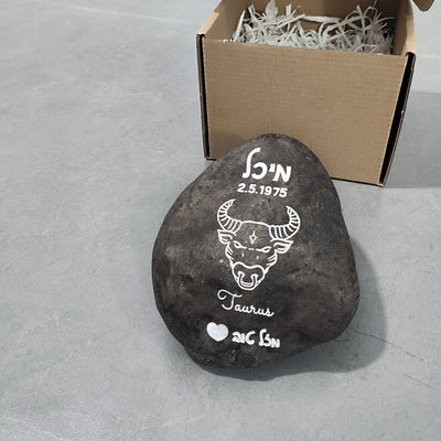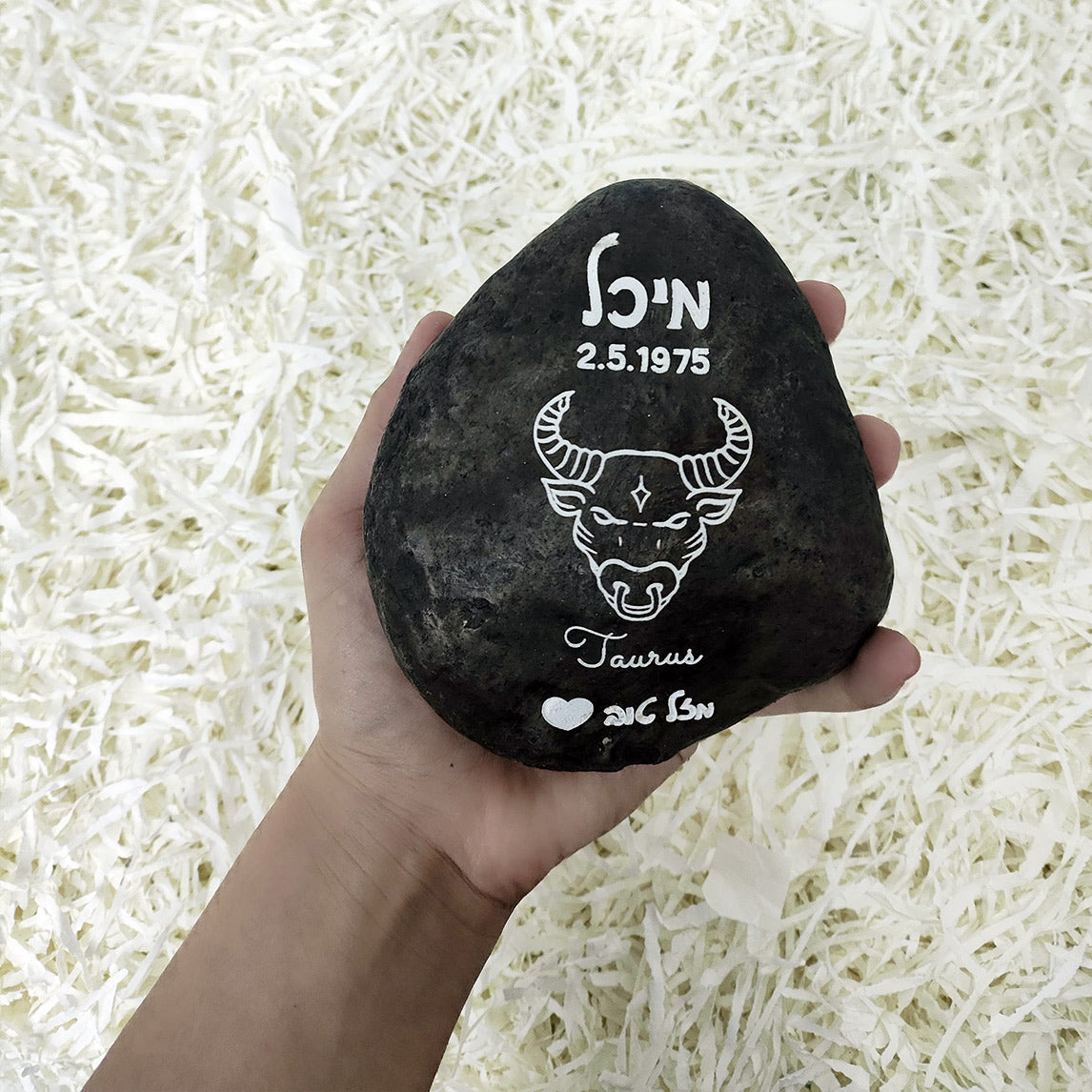 אבן המזלות - גודל ענק במיוחד ! אבני נחל עם חריטה: שם + תאריך + אייקון מזל